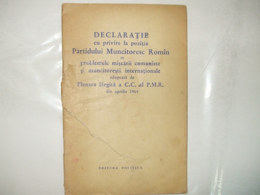 vizitati articolul complet aici : https://ro.scribd.com/document/148806731/Declaratia-din-aprilie-1964-pdf Declarația din aprilie 1964 introducere: La 15 aprilie 1964 începea la bucureşti una dintre numeroasele plenare ale comitetului central al partidului muncitoresc român. Din punct de vedere militar, in spiritul razboiului rece, occidentul infiinteaza ca masura de aparare colectiva organizatia tratatului atlanticului de nord (nato) la 4 aprilie 1948.